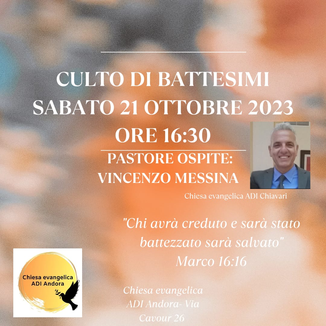 Sabato 21 Ottobre 2023 - Culto di Battesimi: Pastore Ospite Vincenzo Messina