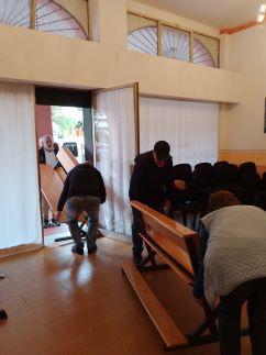 Il trasporto è avvenuto grazie alla disponibilità dei fratelli che, in un solo giorno sono andati e tornati col carico. A causa del brutto tempo non è stato possibile completare il trasporto di tutte le panche e si è reso necessario un secondo viaggio in maggio